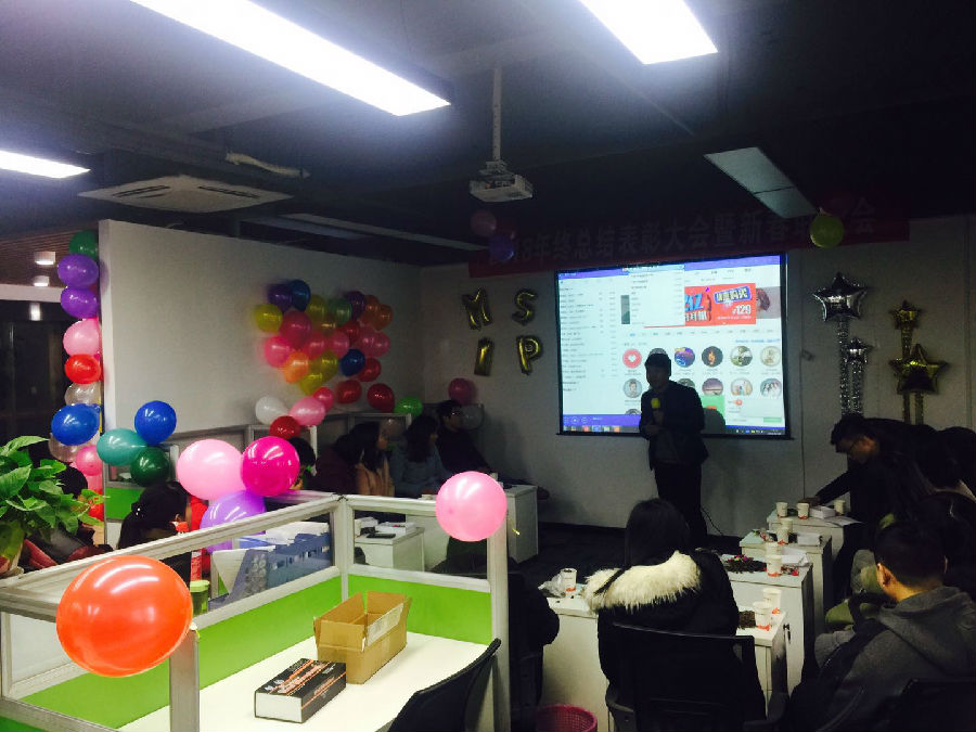 從一大早開始,同事們就開始準(zhǔn)備今天的活動事宜,每個(gè)人都積極參與,將公司裝飾的五彩繽紛、特別喜慶!吹氣球的,將氣球布置到各個(gè)角落的,還不停發(fā)表自己的創(chuàng)意的同事們都盡最大可能將活動場地布置得溫馨有氣氛。