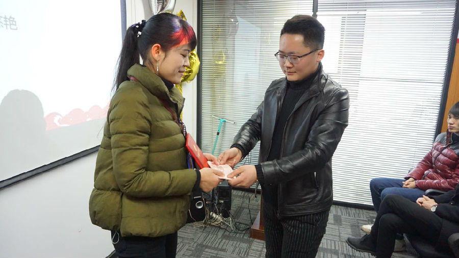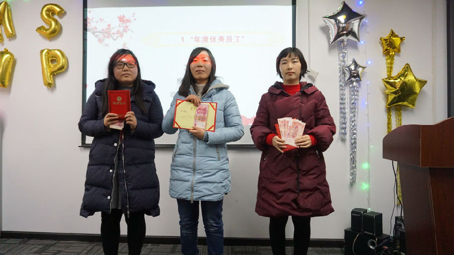 在大會中表揚(yáng)了2017年度的優(yōu)秀員工,評選了“年度優(yōu)秀員工”、“愛崗敬業(yè)獎(jiǎng)”“最佳新人獎(jiǎng)”“最佳貢獻(xiàn)獎(jiǎng)”“貢獻(xiàn)額第一名獎(jiǎng)”這些獎(jiǎng)項(xiàng),并給予了獎(jiǎng)金,以資鼓勵(lì)!這是一年中企業(yè)給予員工的鼓勵(lì)和最好的回饋!