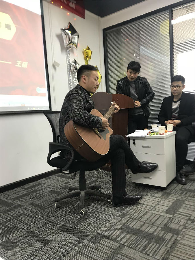 下午在熱烈的氣氛中,我們?nèi)w員工展開了豐富多彩的文藝演出,文藝演出中穿插舉行了“聽曲識歌”和“驛站傳書”的游戲。全體員工積極參與,整個(gè)氣氛熱烈歡騰。文藝匯演中,看得出大家最喜歡的節(jié)目是歌唱表演,參與的同事有張杰,左超,王宗汝,等等,極大限度的體現(xiàn)了我公司員工多才多藝的一面。節(jié)目還有人事部小祝表演的“橡皮筋”魔術(shù)精彩萬分。不同風(fēng)格,體現(xiàn)了我們不同的風(fēng)采,但有一點(diǎn)是共同的:為了公司美好的明天,我們?nèi)σ愿?,努力拼搏?
