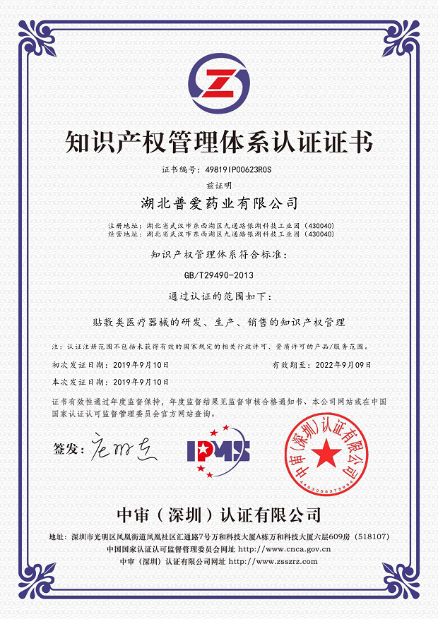 熱烈祝賀湖北普愛(ài)藥業(yè)有限公司于2019年9月獲得知識(shí)產(chǎn)權(quán)貫標(biāo)認(rèn)證證書(shū),這意味著湖北普愛(ài)藥業(yè)有限公司在知識(shí)產(chǎn)權(quán)領(lǐng)域獲得到重要認(rèn)可,在知識(shí)產(chǎn)權(quán)方面得到進(jìn)一步規(guī)范和在綜合競(jìng)爭(zhēng)力得到進(jìn)一步提升。
