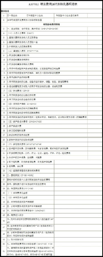 (2)A107012——研發(fā)費(fèi)用加計(jì)扣除優(yōu)惠明細(xì)表